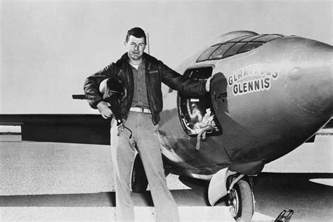 10.Captain Charles E. "Chuck" Yeager poses in the cockpit of the Bell X-1 in May 1948 at Muroc Air Force Base in California.1948年5月,加利福尼亚穆拉克空军基地,查尔斯·E,“Chuck”耶格尔上校在贝尔X-1的驾驶室里。